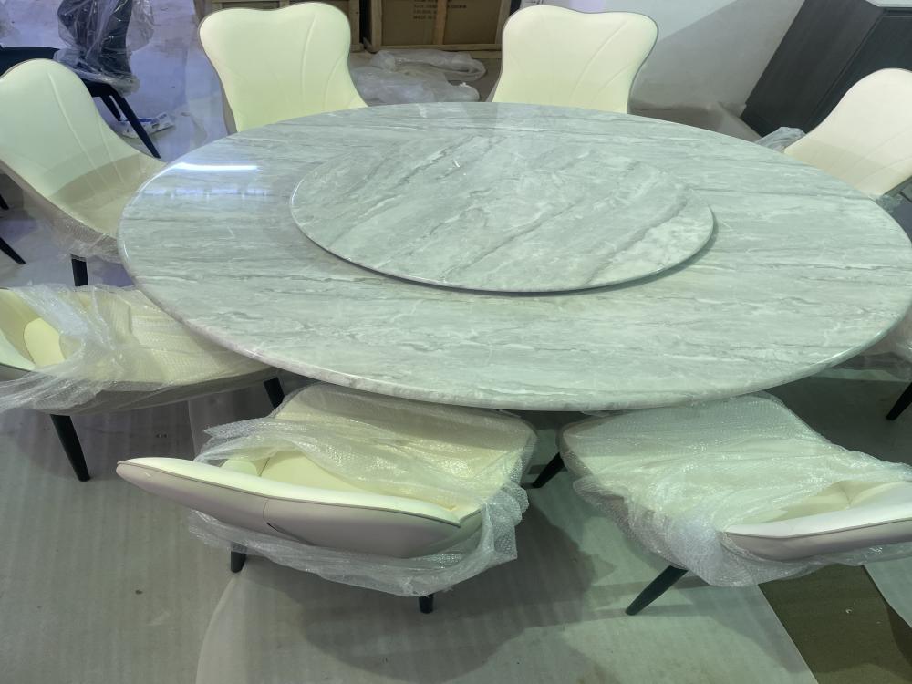 طاولة طعام رخام دائريةقطرها 150 سمعليها صحن دوار رخامقاعدة دائرية رخامعدد 8 كراسي جلدالمنتج جاهز للنقل والتركيبللمشاهدة ع الطبيعة التواصل واتساب 0505481474