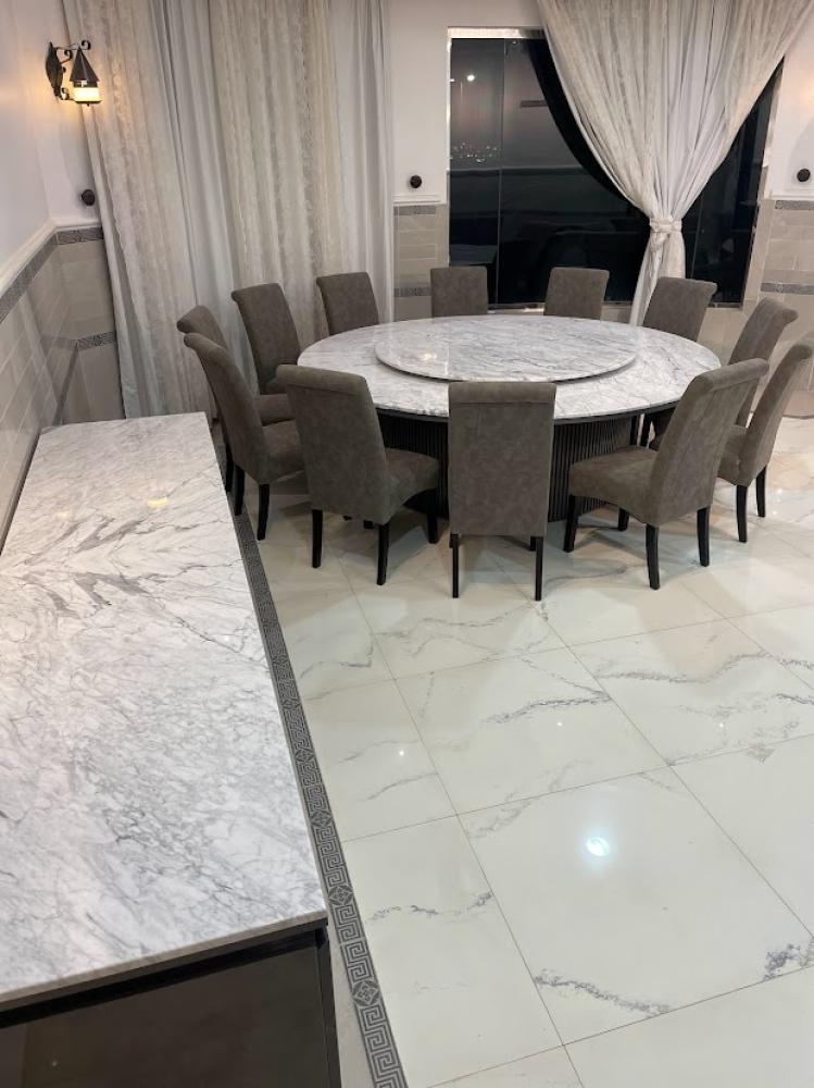 - عليها صحن دوار ضخم يتسع 8 سخانات حجم 8 ليتر